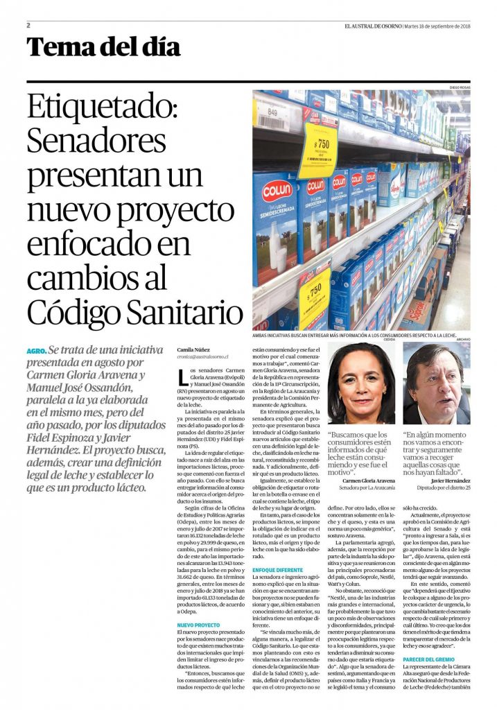 AGRO. Se trata de una iniciativa presentada en agosto por Carmen Gloria Aravena y Manuel José Ossandón, paralela a la ya elaborada en el mismo mes, pero del año pasado, por los diputados Fidel Espinoza y Javier Hernández. El proyecto busca, además, crear una definición legal de leche y establecer lo que es un producto […]