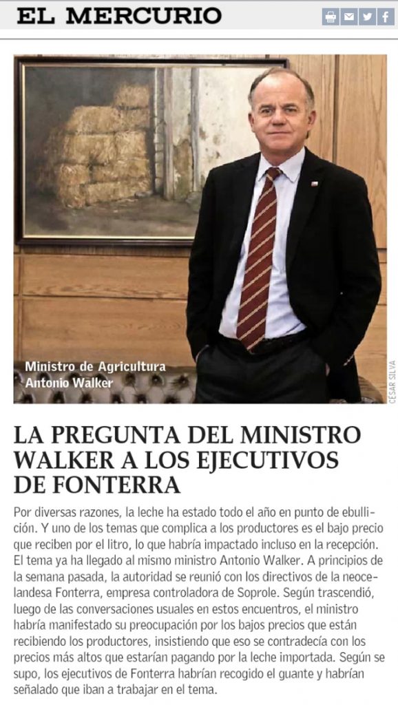 Chile: La pregunta del ministro Walker a los ejecutivos de Fonterra