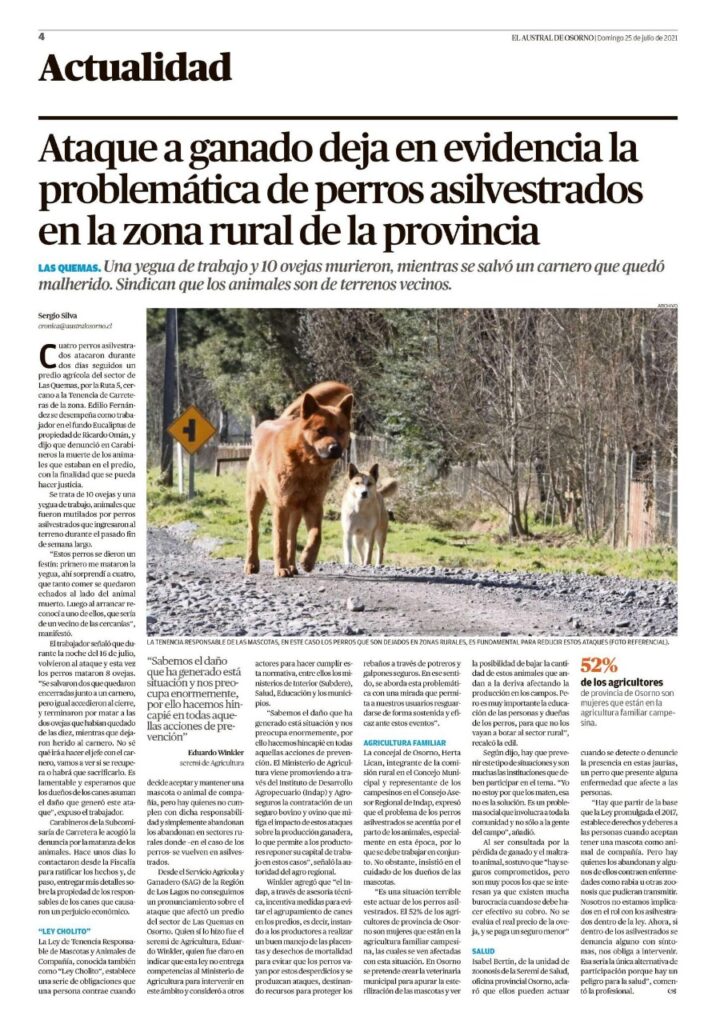 Ataque a ganado deja en evidencia la problemática de perros asilvestrados en la zona rural de la provincia