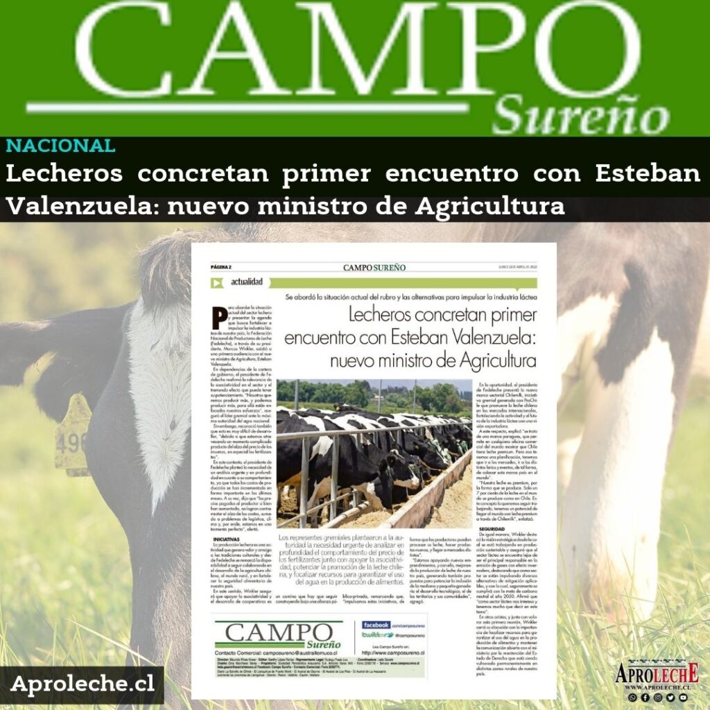 Se abordó la situación actual del rubro y las alternativas para impulsar la industria láctea Los representes gremiales plantearon a la autoridad la necesidad urgente de analizar en profundidad el comportamiento del precio de os fertilizantes junto con apoyar la asociatividad, potenciar la promoción de la leche chilena, y focalizar recursos para garantizar el uso […]