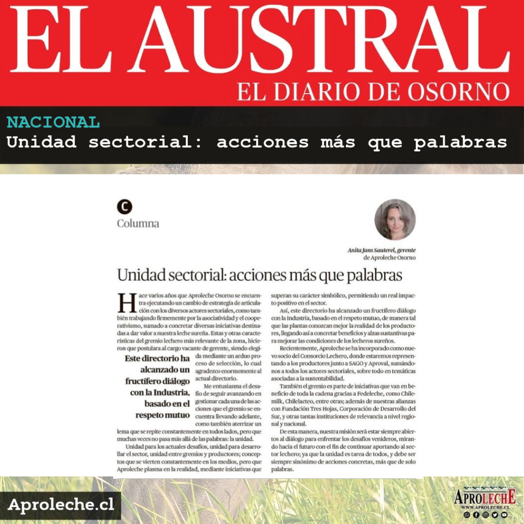 Anita Jans Sauterel, gerente de Aproleche Osorno Hace varios años que Aproleche Osorno se encuentra ejecutando un cambio de estrategia de articulación con los diversos actores sectoriales, como también trabajando firmemente por la asociatividad y el cooperativismo, sumado a concretar diversas iniciativas destinadas a dar valor a nuestra leche sureña. Estas y otras características del […]