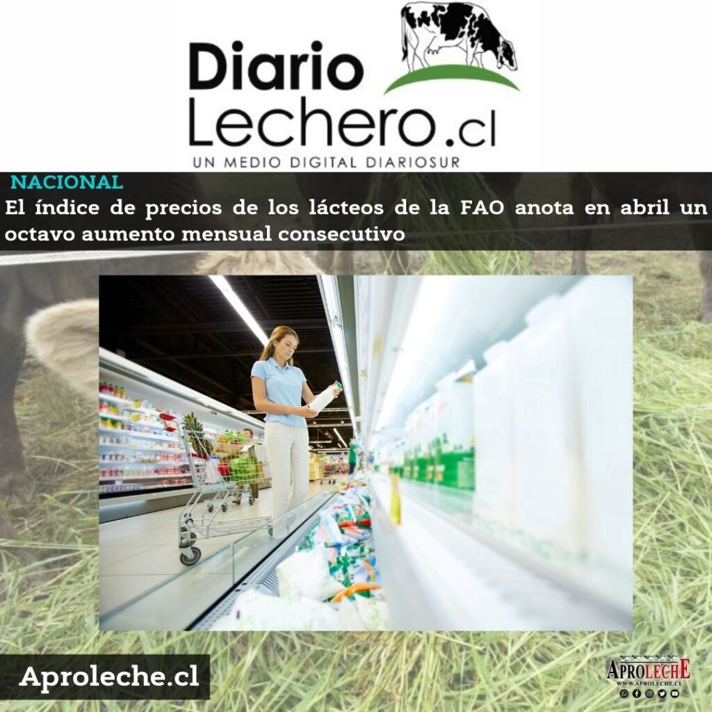 El índice de precios de los productos lácteos de la FAO promedió 147,1 puntos en abril, 1,3 puntos (0,9 por ciento) más que en marzo, marcando el octavo aumento mensual consecutivo y elevando el índice 28,0 puntos (23,5 por ciento) por encima de su valor hace un año. En abril, continuó la tendencia alcista de […]