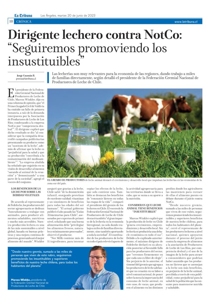 Dirigente lechero contra NotCo: “Seguiremos promoviendo los insustituibles”