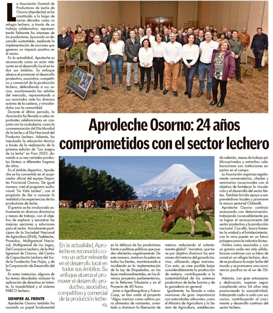 La Asociación Gremial de Productores de Leche de Osorno (Aproleche) se ha constituido a lo largo de varias décadas como un refugio lechero, a través de un trabajo colaborativo, represen-fondo Fielmente los intereses de los productores, buscando un desarrollo sustentable, mediante la implementación de acciones que generen un impacto positivo en el sector. En la […]