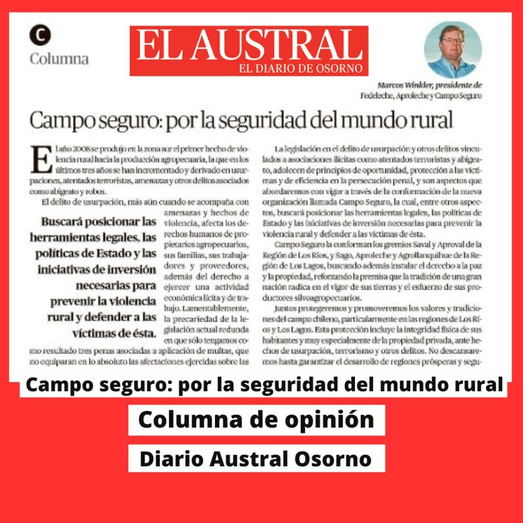 Austral Osorno Buscará posicionar las herramientas legales, las políticas de Estado y las iniciativas de inversión necesarias para prevenir la violencia rural y defender a las víctimas de ésta. Marcos Winkler, presidente de, Fedeleche, Aproleche y Campo Seguro El año 2008 se produjo en la zona sur el primer hecho de violencia rural hacia la […]