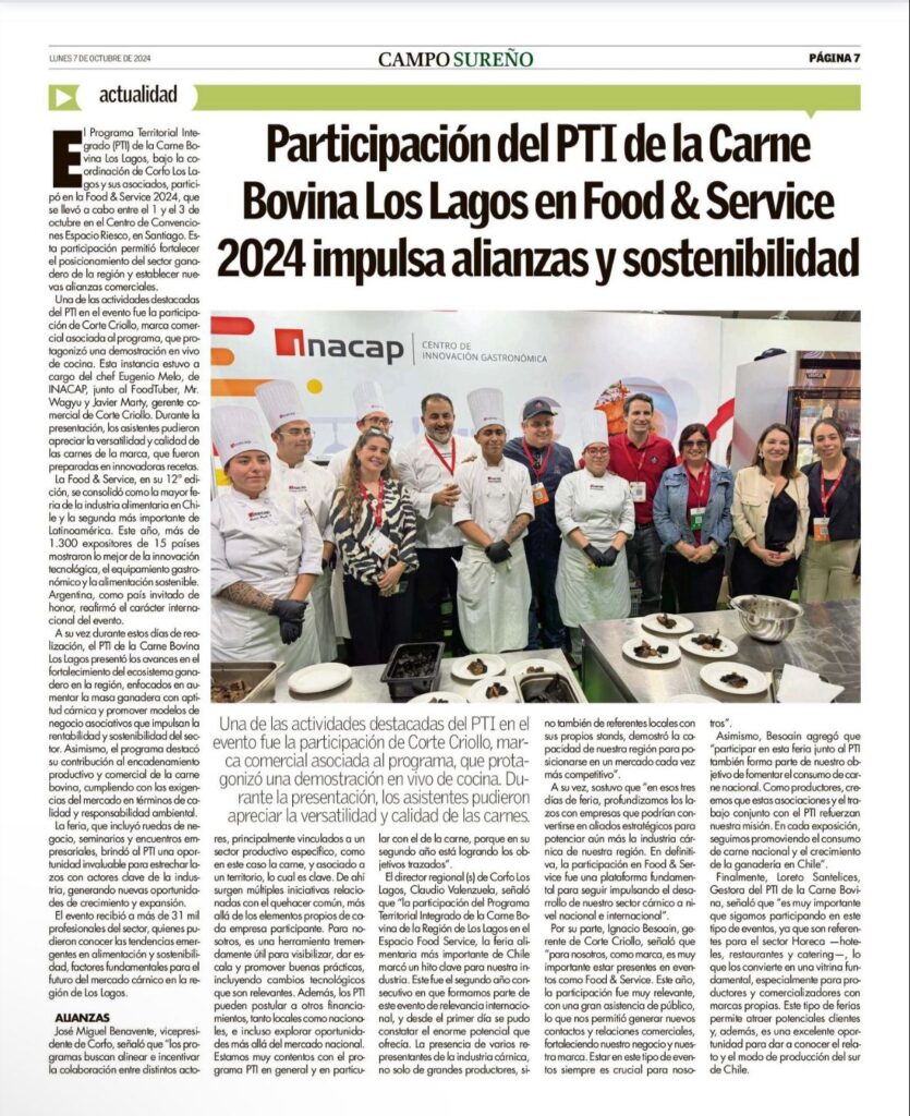 El Austral El Diario de Osorno – Campo Sureño Una de las actividades destacadas del PTI en el evento fue la participación de Corte Criollo, marca comercial asociada al programa, que protagonizó una demostración en vivo de cocina. Durante la presentación, los asistentes pudieron apreciar la versatilidad y calidad de las carnes. El Programa Territorial […]