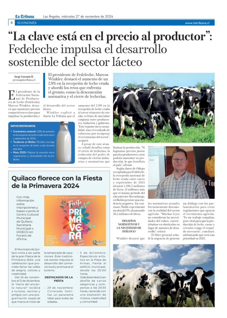 La Tribuna El presidente de Fedeleche, Marcos Winkler, destacó el aumento de un 2,8% en la recepción de Leche cruda y abordó los retos que enfrenta el gremio, como la desconexión normativa y el cierre de lecherías. El presidente de la Federación Nacional de Productores de Leche (Fedeleche), Marcos Winkler, destacó que mantener precios competitivos […]