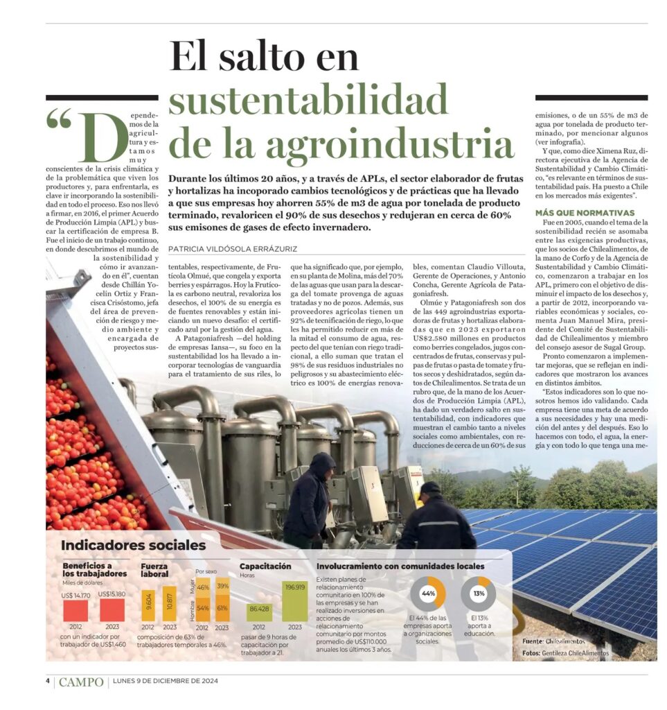 El Mercurio – Revista del Campo Durante los últimos 20 años, y a través de APLs, el sector elaborador de frutas y hortalizas ha incoporado cambios tecnológicos y de prácticas que ha llevado a que sus empresas hoy ahorren 55% de m3 de agua por tonelada de producto terminado, revaloricen el 90% de sus desechos […]