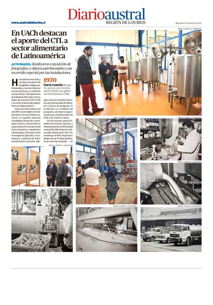 Diario Austral Región de los Ríos ACTIVIDADES. Realizaron exposición de fotografías y objetos patrimoniales y un recorrido especial por las instalaciones. Hace apenas unos días y con una exposición de fotografías y objetos patrimoniales, y un recorrido por sus instalaciones, se realizó la ceremonia de «Recuperación de la historia del Centro Tecnológico de la leche […]