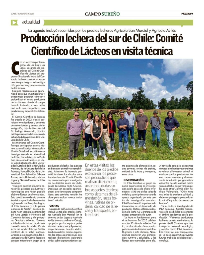 Producción lechera del sur de Chile: Comité Científico de Lácteos en visita técnica
