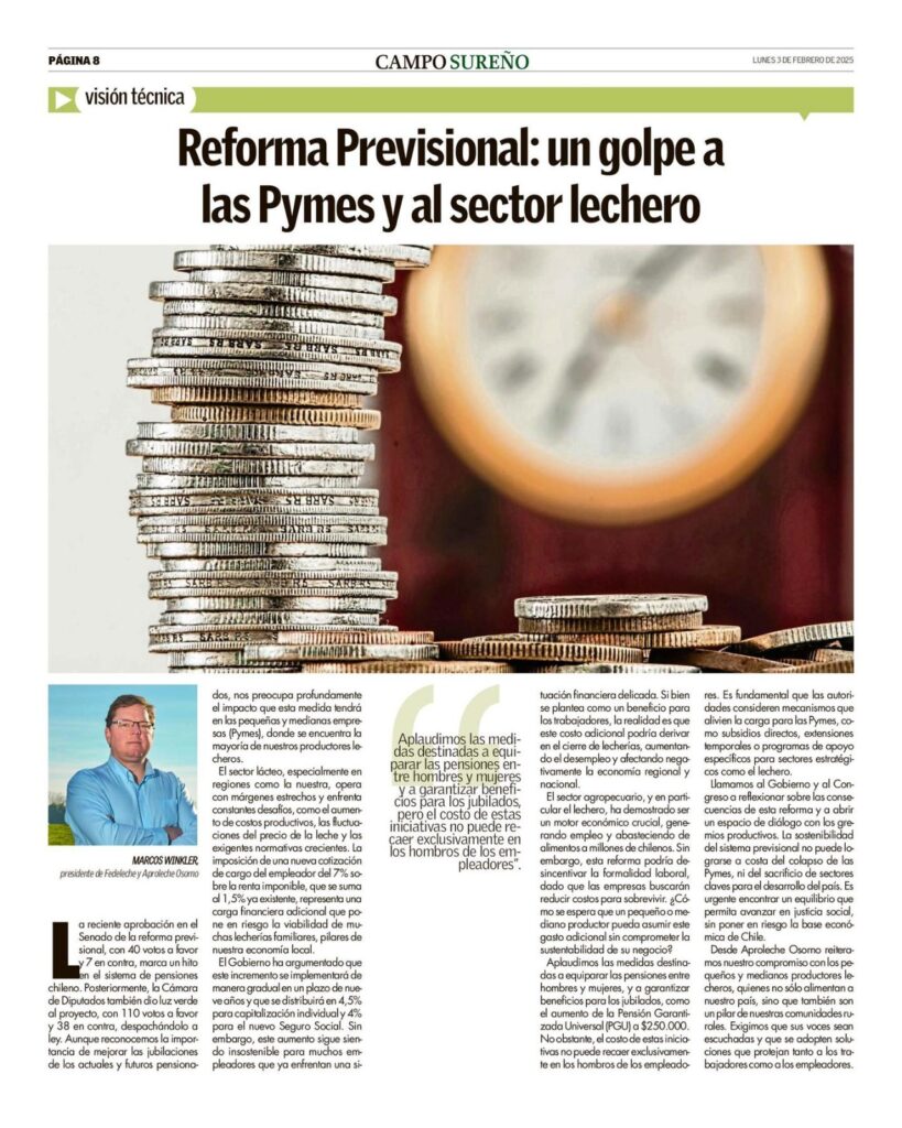 Reforma Previsional: un golpe a las Pymes y al sector lechero